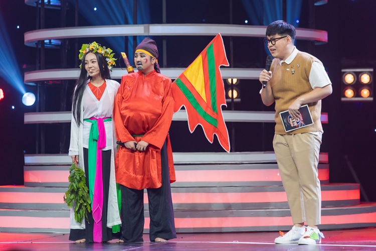 Đại Nghĩa, Khả Như và Hòa Minzy không thể nhịn cười trước màn biến hóa đầy tính giải trí của Trịnh Tú Trung. Nam diễn viên đã không ngại biến hóa 2 lần từ Binz thành Hoàng Thùy Linh trên sân khấu. Ngay khi kết thúc tiết mục, Hòa Minzy lập tức châm chọc: "Xin nha, đừng bao giờ đóng nhân vật đẹp trai như Binz nữa được không Trịnh Tú Trung?". Khả Như tiếp tục bồi thêm: "Anh bước ra là em cọc liền mà".