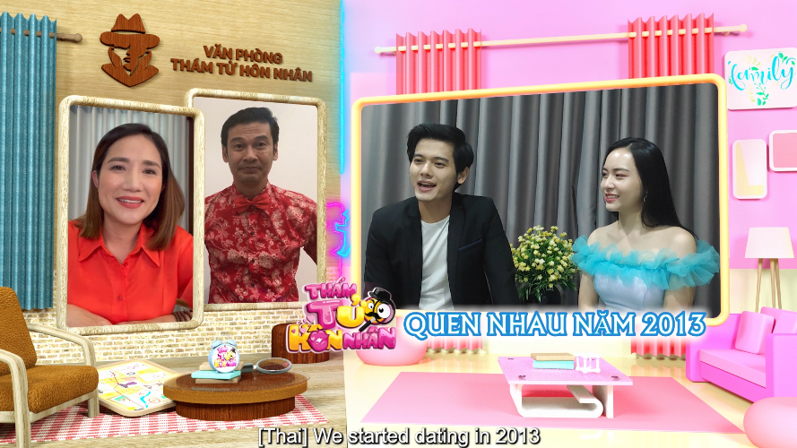 Đến với phiên bản ghi hình online Thám Tử Hôn Nhân tập 1 là sự xuất hiện của cặp vợ chồng “trai tài gái sắc”: diễn viên Trần Quang Thái và bà xã Hoàng Yến Chi. Cặp đôi được nhiều khán giả hết lòng chúc phúc từ khi bén duyên với nhau trong bộ phim đầu tiên hợp tác. Kết hôn từ năm 2016, đến nay hai vợ chồng đã có bé trai 4 tuổi. Lãng mạn, ngọt ngào ở câu chuyện tình cảm bao nhiêu, thì cặp đôi lại khiến hai “thám tử” dở khóc ở cười bấy nhiêu ở phần “bóc phốt”.