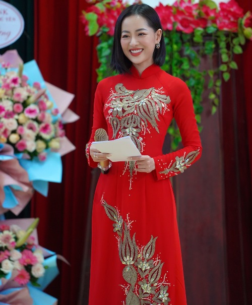 MC Lê Đình Minh Ngọc chọn cho mình chiếc áo dài truyền thống để phù hợp với tính chất lễ hội