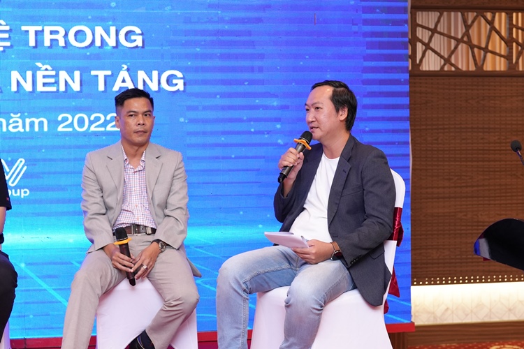 Cũng trong khuôn khổ hội thảo, toạ đàm do ông Phạm Ngọc Duy Liêm - COO MCV Group giữ vai trò host đã tiếp tục đặt ra những câu hỏi tham vấn đến các diễn giả trên và khách mời đặc biệt: ông Huy Nguyễn - Phó chủ tịch Hiệp hội Blockchain, ông Lê Tấn Phước - COO Cyber SSI về các vấn đề xoay quanh việc ứng dụng công nghệ trong sản xuất và phát hành nội dung đa nền tảng.