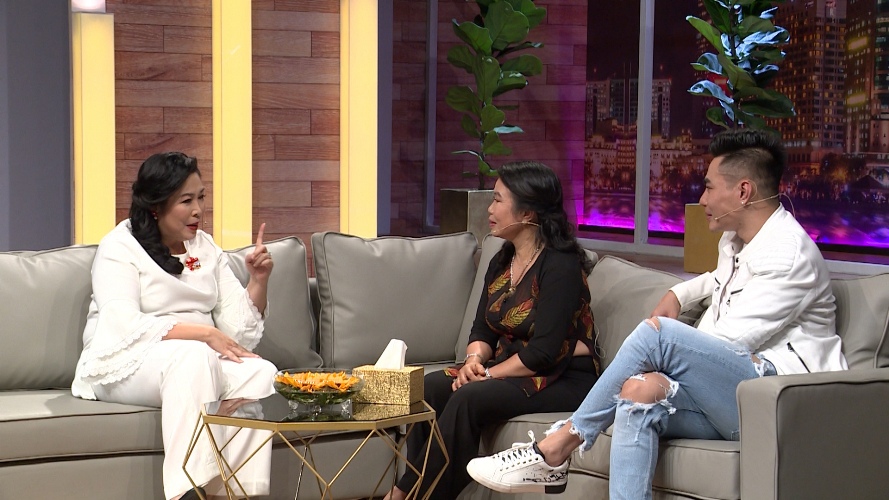Lê Dương Bảo Lâm cùng mẹ và NSND Hồng Vân trò chuyện trong chương trình
