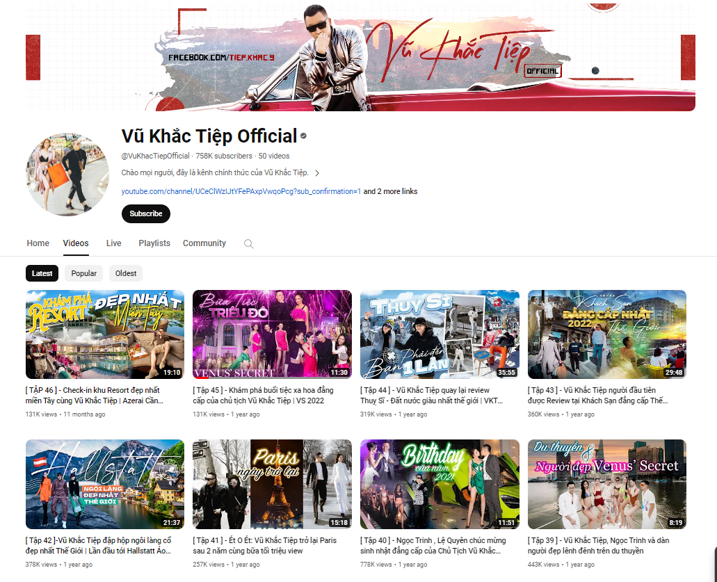 Đứng đầu danh sách là kênh “Chu Du 4 Miền” (5,15 ngàn subscribers) tăng trưởng lượt xem mạnh mẽ lên đến 1407.53% với các nội dung về du lịch trải nghiệm dọc cả nước Việt Nam đúng như tên kênh. Cũng trong mảng chủ đề Travel, kênh “Vũ Khắc Tiệp Official” (758 ngàn subscribers) của “ông bầu” Vũ Khắc Tiệp với rất nhiều video vi vu từ trong đến ngoài nước cực “chanh sả” cũng nhẹ nhàng tăng 334.61% lượt xem.