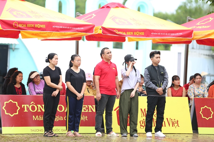 Ở một diễn biến khác, trong lúc thời tiết vẫn đang mưa lất phất, MC Quyền Linh vẫn vui vẻ, thản nhiên ngồi trò chuyện với Minh Dự và Khổng Tú Quỳnh phía sau cánh gà sân khấu. Anh “MC quốc dân” cho biết với thời tiết mưa như thế anh không lo lắng gì khác mà chỉ sợ máy móc, âm thanh không thể đảm bảo cho việc ghi hình. “Nếu âm thanh, máy quay ‘chơi’ được cả mưa thì mình ‘chơi’ cả mưa, nó ‘chơi’ được cả bão thì mình ‘chơi’ luôn bão. Chúng ta đang đi trên con đường cứu trợ thì chúng ta không thể dừng lại, nếu mình dừng thì cơ hội dành cho người nghèo sẽ mất đi. Ví dụ ngày hôm nay chúng ta giúp được một gia đình có được 50 triệu, nếu chúng ta bỏ qua ngày hôm nay thì ngày mai họ hết cơ hội. 50 triệu đó họ có thể vực dậy cuộc sống của họ thì sao. Chính vì thế, đi giúp đỡ người nghèo là không dừng lại cho dù mưa gió, bão bùng vẫn cứ đi”, MC Quyền Linh khẳng khái nói.