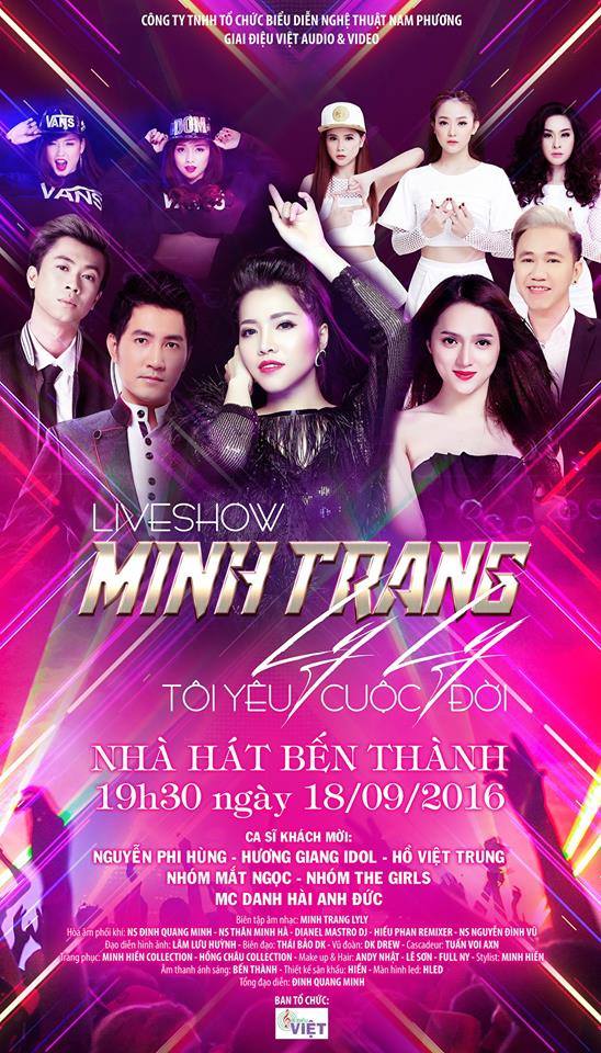 Tiếp tục tạo dấu ấn mới cho con đường sự nghiệp, thời gian này Minh Trang Lyly đang cùng ê-kíp thực hiện một dự án âm nhạc được xem là khá táo bạo, độc và lạ, đó là live show Minh Trang Lyly - Tôi yêu cuộc đời, diễn ra lúc 20g ngày 18/9/2016, tại Nhà hát Bến Thành – Quận 1, TP. Hồ Chí Minh. Với sự đầu tư gần 2 tỷ đồng cho live show, ca sĩ Minh Trang Lyly hứa hẹn sẽ mang đến cho khán giả phía Nam một đêm nhạc đặc sặc, đúng chất live show.