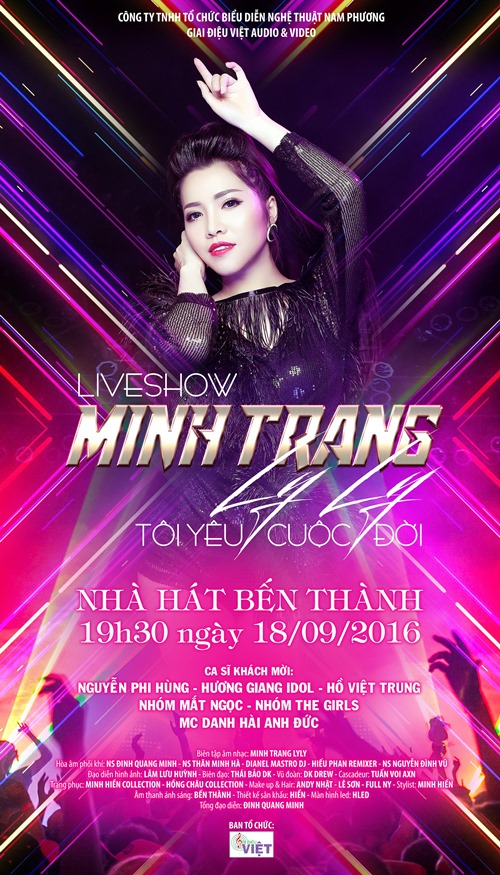 Với sự đầu tư gần 2 tỷ đồng cho live show, ca sĩ Minh Trang Lyly hứa hẹn sẽ mang đến cho khán giả phía Nam một đêm nhạc đặc sặc, đúng chất live show qua tài dàn dựng và biên tập của nhạc sĩ Đinh Quang Minh...