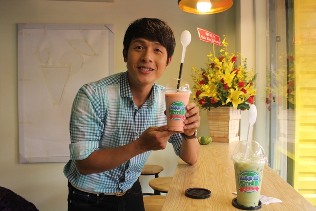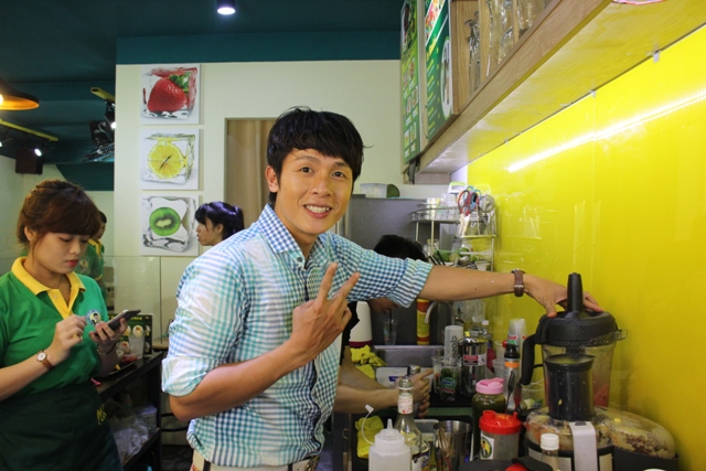 Hòa Hiệp tự tay pha chế các món nước cho khách