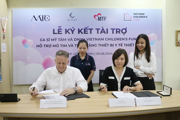 Mới đây, Mỹ Tâm và DNXH Vietnam Children's Fund đã có buổi ký kết tài trợ 200.000.000 VNĐ nhằm hỗ trợ chi phí mổ tim cho các em bé mắc dị tật tim bẩm sinh có hoàn cảnh khó khăn và chương trình "Hỗ trợ các thiết bị chăm sóc trẻ sơ sinh thiết yếu" góp phần trao thêm sự sống của các bà mẹ và trẻ em tại vùng sâu vùng xa.