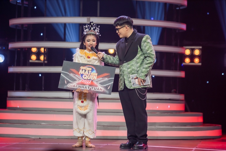 Kết màn Khả Hân còn khiến khán giả thích thú khi mạnh dạn mời hết dàn Ban giám khảo và Ban cố vấn rời khỏi rời khỏi ghế ngồi để lên sân khấu chụp ảnh. Sự tinh nghịch của Khả Hân đã giúp cho các đội ngũ giám khảo và cố vấn có những khoảnh khắc kỷ niệm ấn tượng trên sân khấu Gương mặt thân quen 2022.