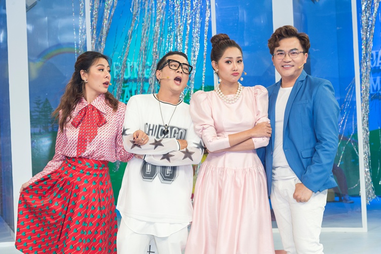 Màn tung hứng “lầy lội” giữa 3 thủ lĩnh Vũ Hà, Nam Thư, Tường Vi và MC Đại Nghĩa khiến cả trường quay không thể nhịn cười.