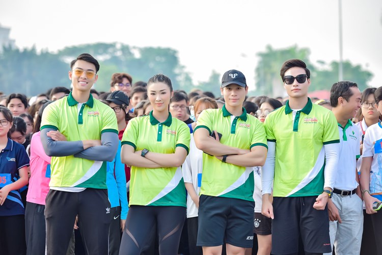 Có mặt từ rất sớm, dàn Nam vương – Hoa hậu nhà Vietnam Fitness Model đã cùng các bạn sinh viên khởi động, làm nóng cơ thể để có thể tham gia giải việt dã một cách tốt nhất. Các bạn trẻ cũng tranh thủ thời gian còn sớm để chụp hình cùng với những thần tượng của mình. Hoa hậu Tường Vy không giấu nổi hạnh phúc khi nhận được sự quý mến đặc biệt từ các bạn sinh viên, và liên tục chụp hình cùng các bạn đến nỗi bị cuốn ra khỏi vị trí đội hình.