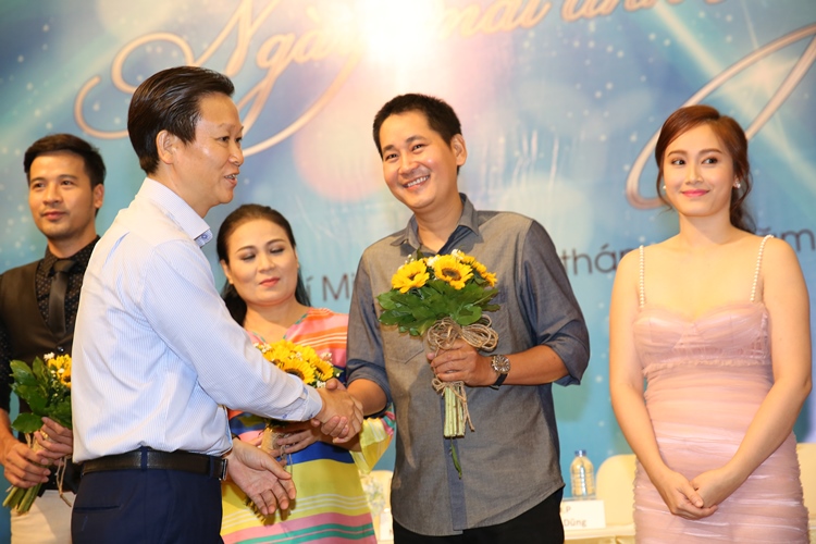 Đại diện VTV tặng hoa cho đoàn làm phim "Ngày mai ánh sáng"