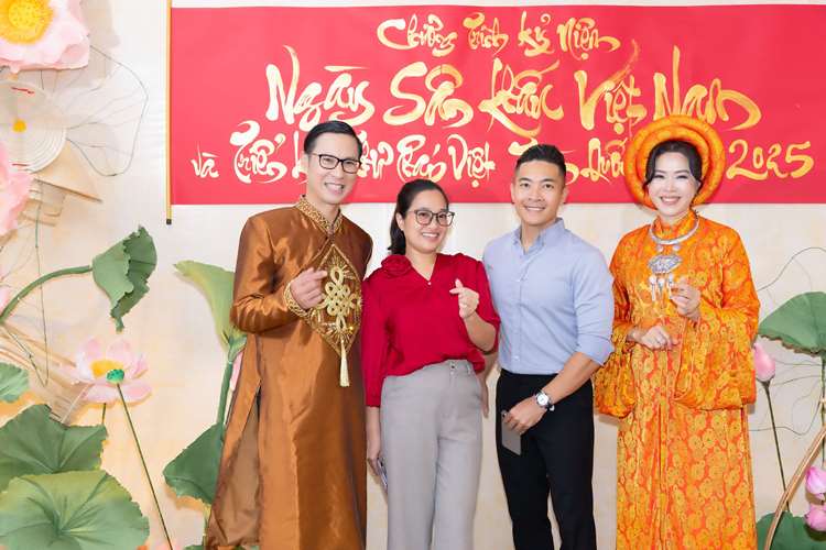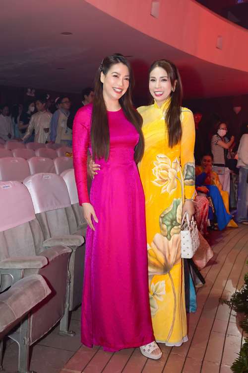 Ca sỹ Đoan Trường diện áo dài của NTK Trần Được chia sẻ: “Năm nào tôi cũng mang hoa lên cúng Tổ tại NVH Thanh Niên vì nơi đây là sân khấu đầu tiên tôi hát và đoạt giải nhì Tiếng hát học sinh- sinh viên toàn thành năm 1985”.