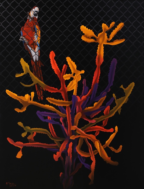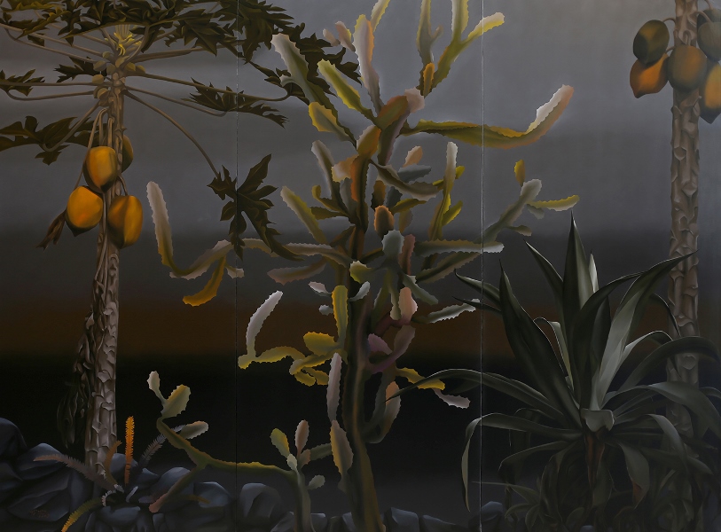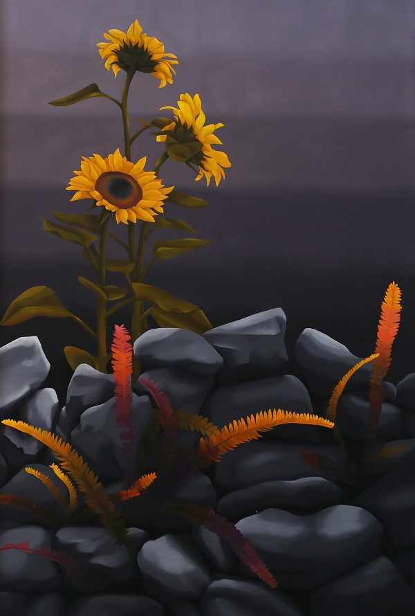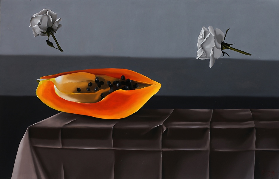 Dường như các chuyển động gây ảo giác trong những seri tranh trước đây đã nhường chỗ cho một sự tĩnh lặng cô đặc đến nghẹt thở, lơ lửng giữa thực tại và hư vô, những chiều thời gian, chiều ánh sáng, dường như khựng lại trong một nền đen thẳm huyền bí, những bông hoa hay những quả tưởng chừng như hiện thực nhưng rất mất cân đối kia,có thể sờ mó được kia, không chỉ còn là câu chuyện của một tĩnh vật hiện thực mà nó trở thành một đường dẫn tới những câu hỏi rất ám ảnh với người xem , về cuộc sống thực tại, chúng ta đang đối mặt với cái gì đây? Cuộc sống này có thực không? Thực ra sao? hay nó đã là quá khứ?