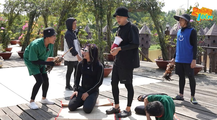 Khi đổi lượt chơi cũng là lúc Thu Diễm được “phục thù”. Nếu như ban nãy Kiều Minh Tuấn và Cris Phan chỉ đánh bằng chổi lông gà bình thường thì giờ đội của Dương Lâm đã lên trình, tự kiếm được cây chổi chà để làm đạo cụ cho mình. Và cứ thế, khi nhận được hiệu lệnh sai, Thu Diễm liền “xả roi” vào người Cris Phan.