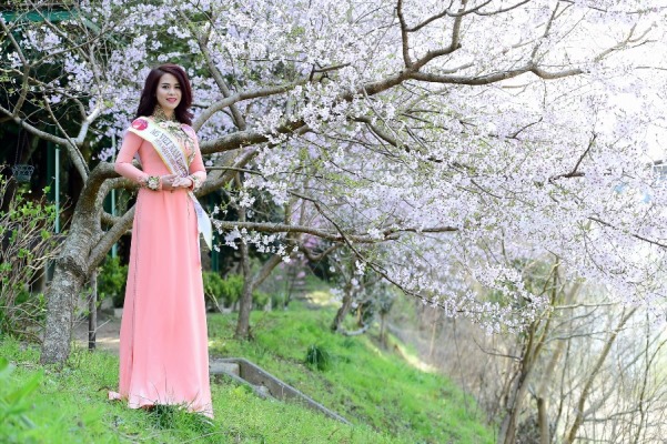 Trần Ngọc Lan trong sắc hoa anh đào tại Nhật