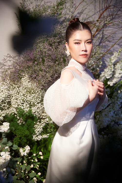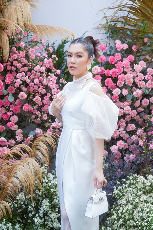 Sự thanh lịch, sang trọng thể hiện được đẳng cấp và cái tôi cá nhân luôn là yếu tố tiên quyết của Trâm Anh mỗi khi lựa chọn trang phục để tham dự sự kiện. Chính vì vậy đến với triển lãm của PHUONG MY, Mrs International Global Vietnam 2022 đã lựa chọn một chiếc váy trắng khoét vai nhẹ nhàng, nữ tính. Điểm nhấn của bộ cánh chính là phần xẻ tà kết hợp với vải voan xuyên thấu giúp người đẹp khoe khéo đôi chân nuột nà. Trâm Anh cũng tinh tế trang điểm theo phong cách glass skin với làn da căng bóng mang lại cảm giác mong manh tựa nàng thơ nhưng vẫn sang trọng, đẳng cấp.