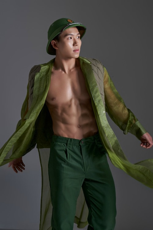 Đem đến cuộc thi năm nay, ngoài một ý chí mạnh mẽ và tinh thần chiến đấu quật cường, Nguyễn Hoàng Tùng còn được NTK Vũ Việt Hà dày công chuẩn bị bộ trang phục dân tộc đặc biệt được làm từ vải đũi và tơ tằm trong suốt, được lồng ghép tinh tế trong đó là hình ảnh chiếc áo dài truyền thống Việt Nam cùng với trang phục của các chiến binh bảo vệ và xây dựng hòa bình cho tổ quốc.