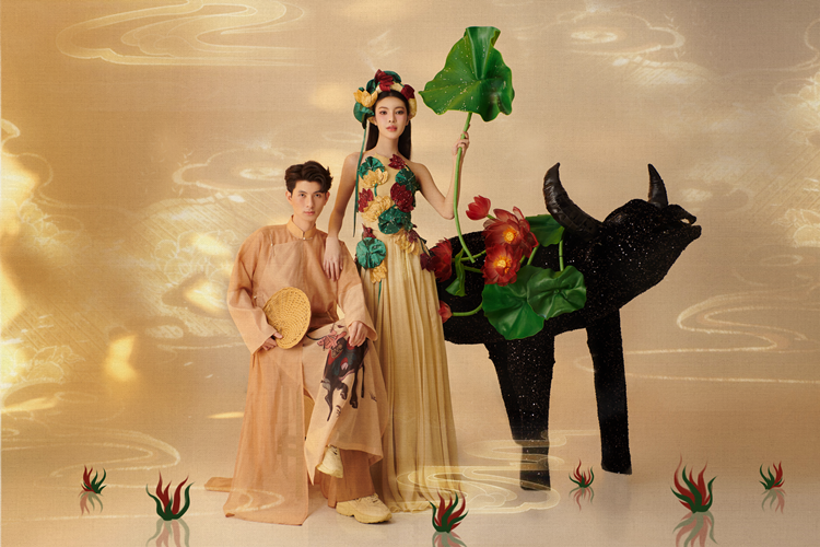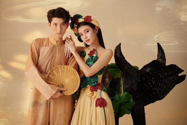 Nguyễn Minh Công và Tường San mang văn hóa tranh Đông Hồ ra đấu trường nhan sắc quốc tế