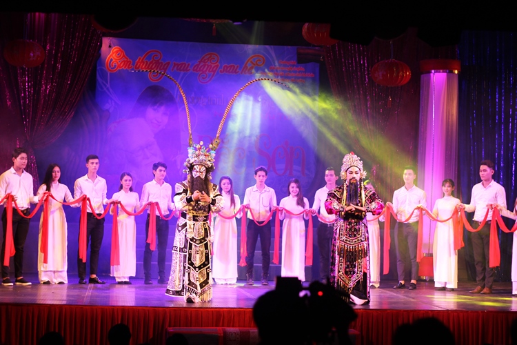 NS Hát bội Minh Hòa, Trường Lộc và các sinh viên ĐH Sân khấu Điện ảnh TPHCM với tiết mục mở màn đêm diễn
