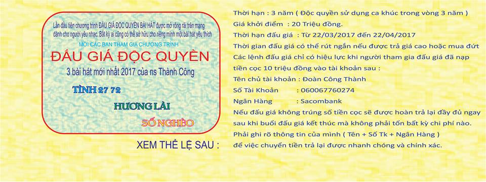 Một điều rất đặc biệt là lần đầu tiên, ca khúc này cùng hai ca khúc Hương Lài, Số nghèo được anh đưa lên facebook cá nhân Đoàn Công Thành để đấu giá trực tiếp?