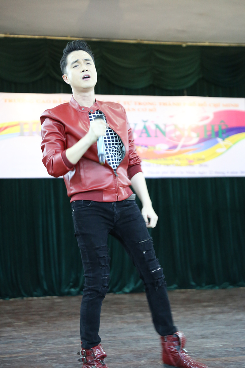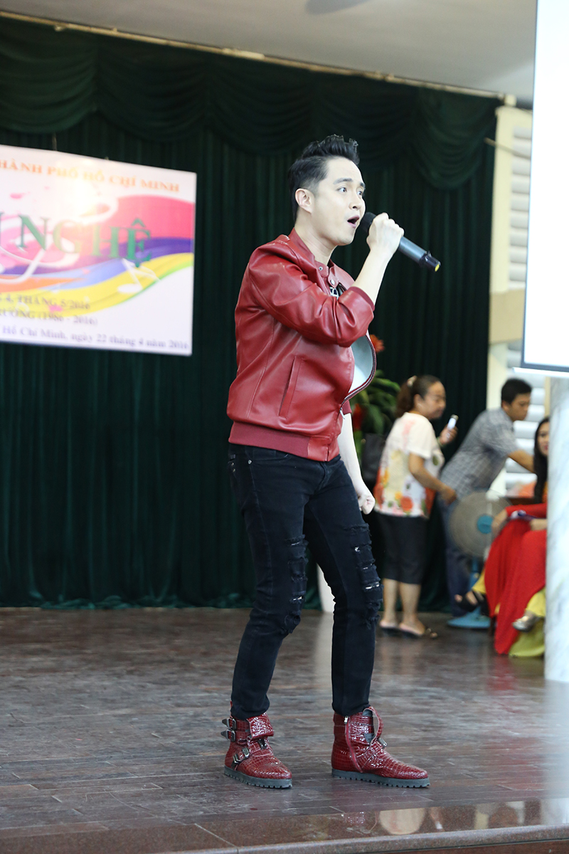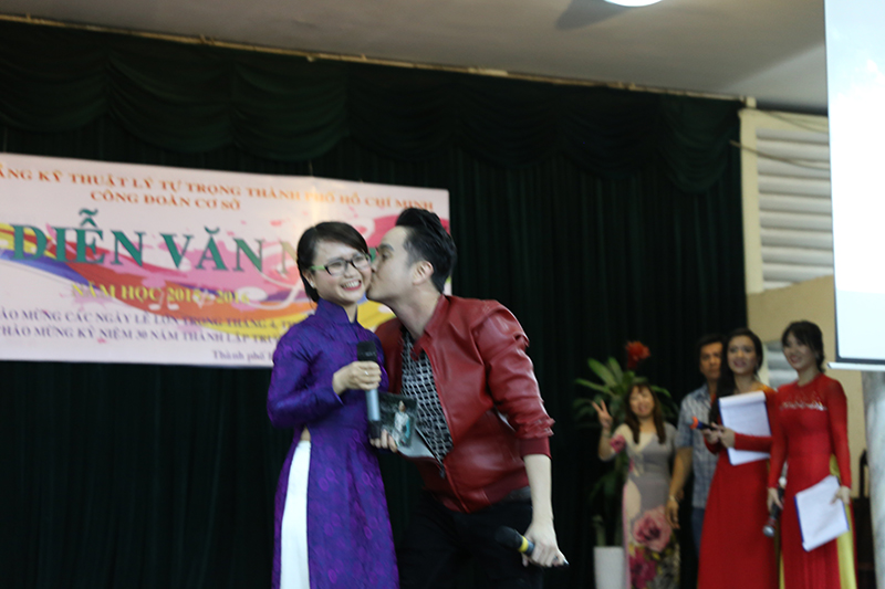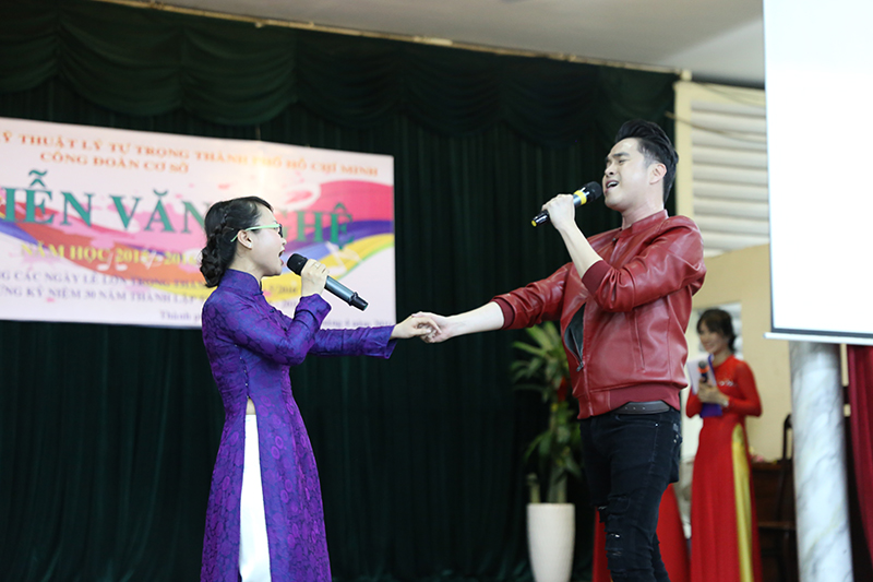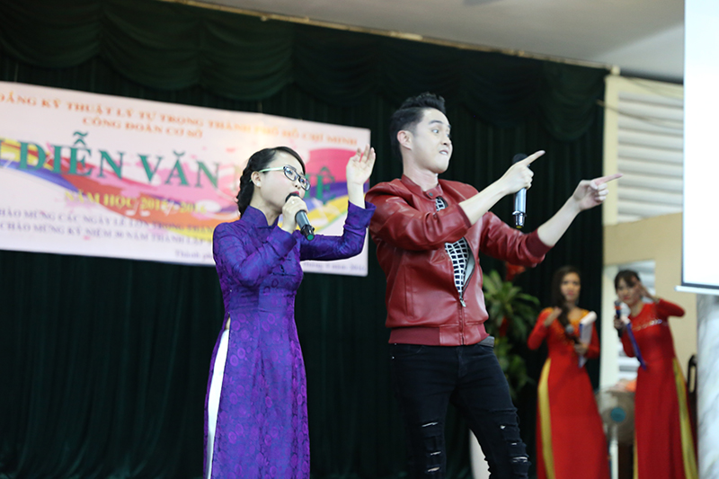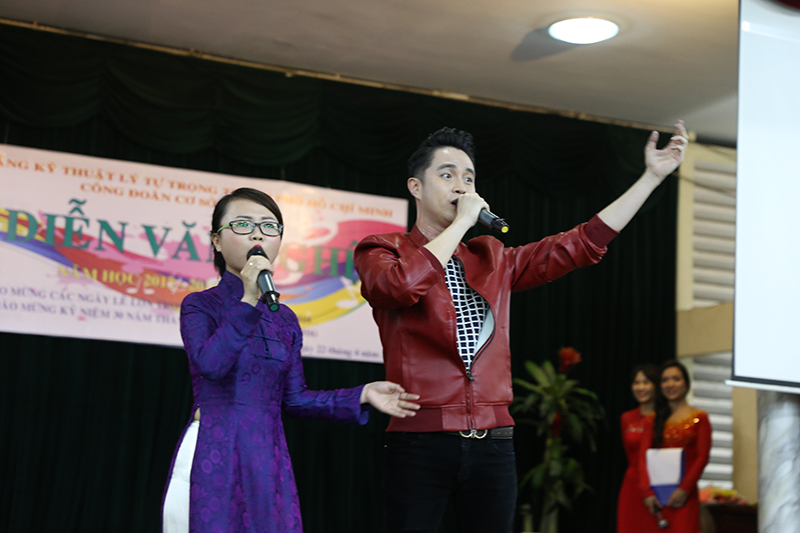 Đêm thi và trao giải hội thi văn nghệ với chủ đề “Mái trường thân yêu” vừa diễn ra tưng bừng vào tối 22-4 tại Trường Cao Đẳng Kỹ thuật Lý Tự Trọng TPHCM. Xuất hiện với vai trò khách mời, nam ca sĩ của “Vầng trăng khóc” đã khuấy động hội thi bằng những ca khúc hít sôi động của mình.