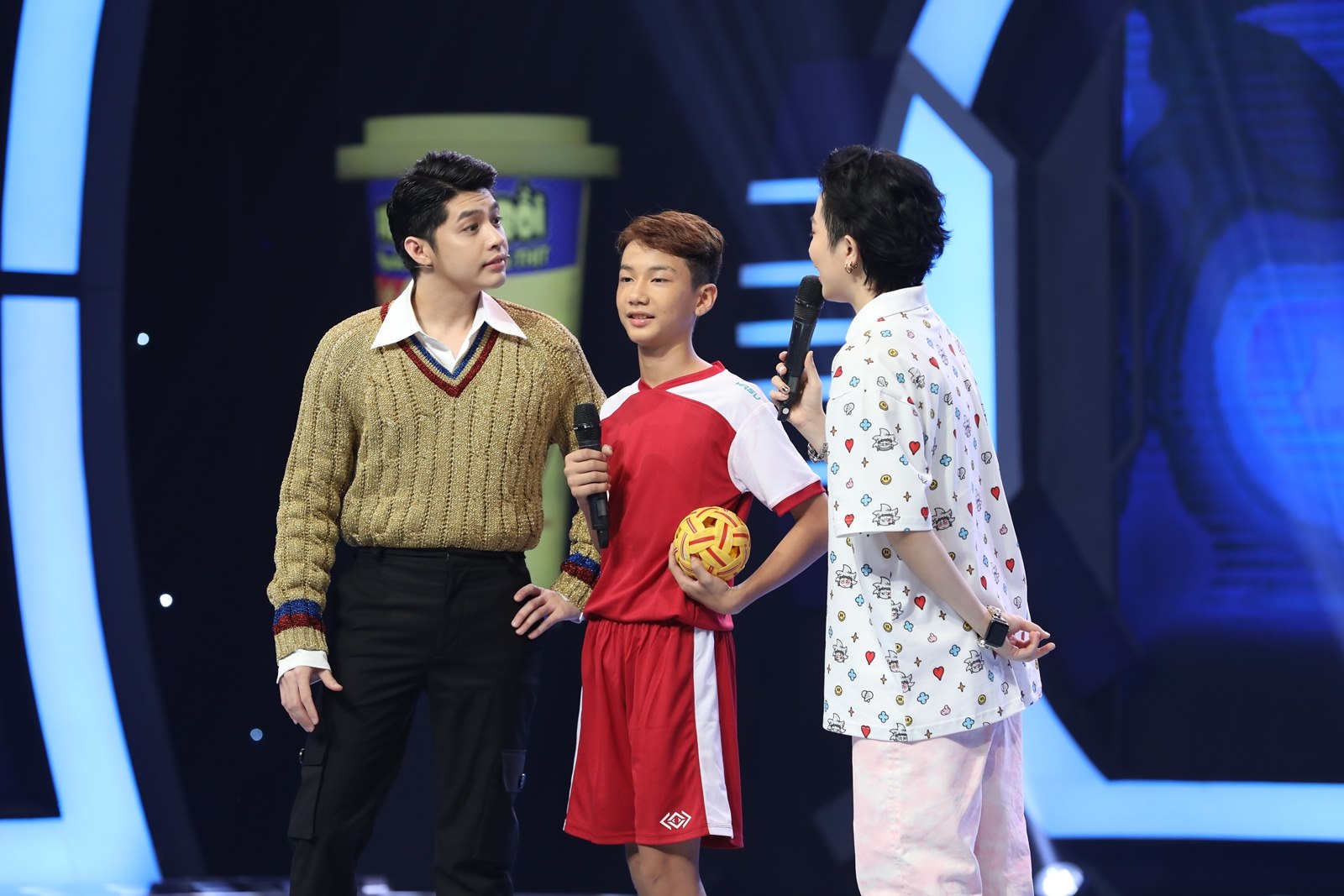 Như thường lệ, khách mời đến với Siêu Tài Năng Nhí sẽ phải tham gia hàng loạt những thử thách cùng các bé. Noo Phước Thịnh cũng không phải trường hợp ngoại lệ, nam ca sĩ nhanh chóng được Trấn Thành ép lên sân khấu chơi đá cầu cùng bạn nhỏ Ngô Hoàng Phúc Thịnh.