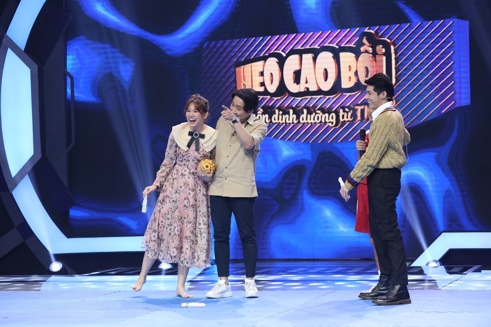 Tưởng rằng Noo Phước Thịnh sẽ e dè, nhưng ngay lập tức anh cởi phăng giày tham gia ngay cùng bạn thí sinh nhí. Không dừng lại ở đó, Noo Phước Thịnh còn tìm cách “ép buộc” Trấn Thành và Hari Won lên sân khấu.