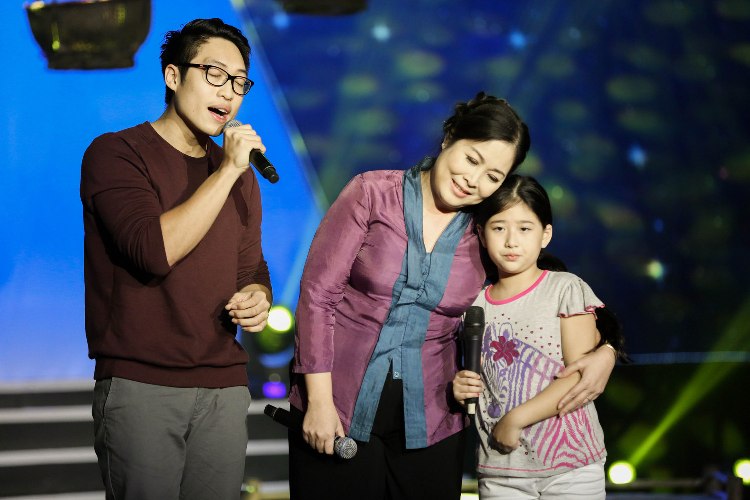 Không kìm nén được cảm xúc, NSND Hồng Vân đã khóc nghẹn ngào khi cùng con trai Trê Phi và con gái Bí Ngô thể hiện ca khúc "Đạo làm con"...