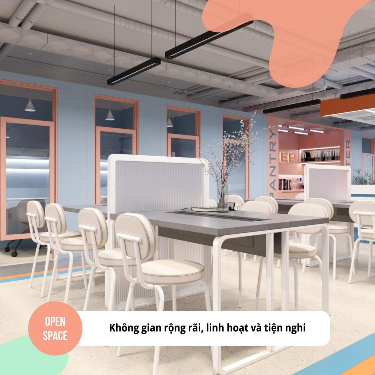 Private space: Không gian có phần riêng tư hơn dành cho các bạn có có nhu cầu cao về sự tập trung và mong muốn không bị xao nhãng từ bên ngoài.