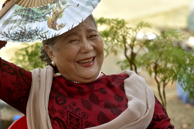 Phải nói, mỗi câu nói của bà luôn dí dỏm, biểu hiện sự yêu nghề đầy lạc quan, dù phải chờ nữa ngày trời mới được quay, nhưng xem ra bà chẳng tí xíu gì phàn nàn, trái lại bà luôn biết cách làm mọi người phấn khởi để mà... mần phim.