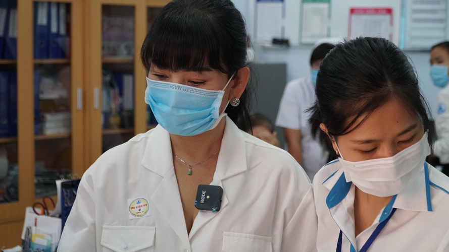 NSƯT Mỹ Uyên rưng rưng nước mắt nhìn các em nhỏ bệnh nhi...