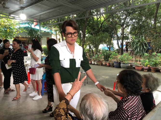 Diễn viên Hòa Hiệp - Bá Thắng, NSUT Ngọc Huyền cùng doanh nhân Lâm Thu Thủy tại Viện dưỡng lão nghệ sĩ