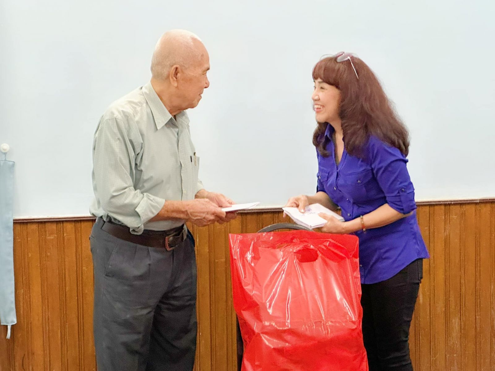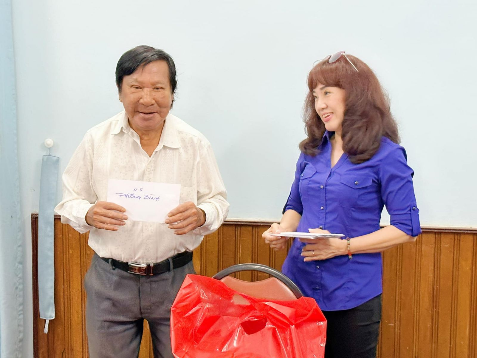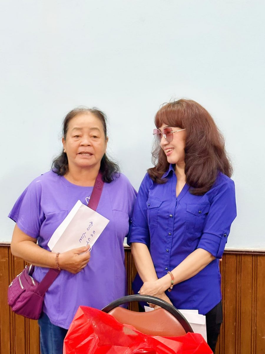 Vừa từ Mỹ về nước được mấy hôm, chị đã lên danh sách mời 16 nghệ sĩ lão thành, có hoàn cảnh khó khăn để tổ chức buổi gặp gỡ thân mặt . Danh sách này có những nghệ sĩ rất quen thuộc với khán giả như NSƯT Tô Kim Hồng, NSƯT Thanh Nguyệt- Quốc Nhĩ, NSƯT Hùng Minh – Hoa Lan, NS Hữu Tài Bích Thủy, NS Mạc Can, NS Phương Bình, danh hài Vũ Quang, NS Trang Thanh Xuân, soạn giả Đức Hiền…