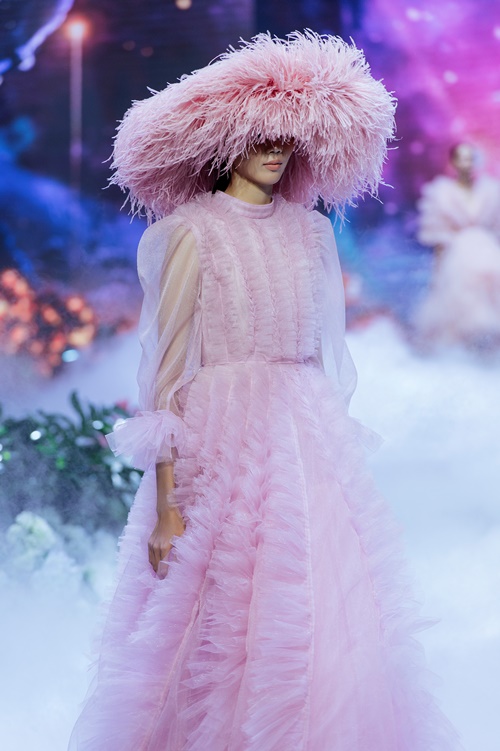 Kế tiếp là bộ sưu tập Haute Couture mang đậm sắc màu kiêu kỳ, sang trọng, nơi các người mẫu hóa thân thành những nàng tiên bí ẩn bước ra từ thế giới cổ tích vừa lạnh lùng, vừa bí ẩn, lại vô cùng quyến rũ và thu hút. Nguyễn Minh Công đã khéo léo sử dụng những chất liệu mềm mại, bay bổng để làm tôn lên sự lãng mạn cho bộ sưu tập của mình, và đây chính là một lời khẳng định của bản thân anh về sự chỉn chu, kỳ công của mình trong mỗi thiết kế mà anh mang lên sàn diễn trong suốt hơn nửa thập kỷ qua.