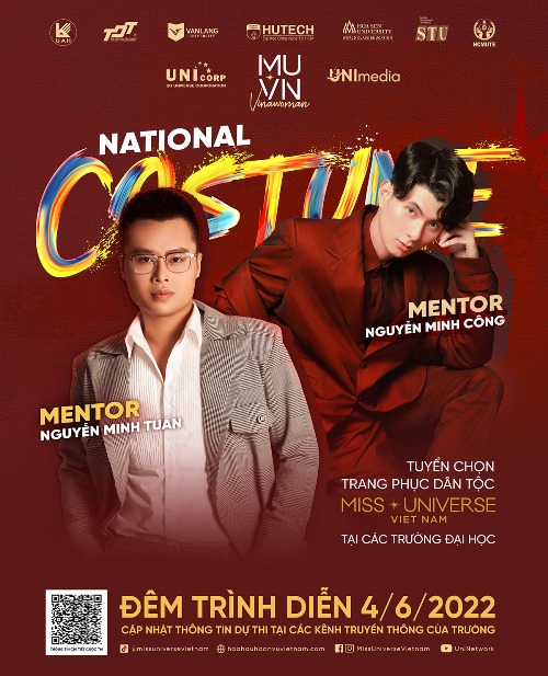 Tối ngày 28/3 vừa qua, Ban tổ chức của chương trình Miss Universe Vietnam - Hoa Hậu Hoàn Vũ Việt Nam 2022 đã chính thức công bố tên tuổi của hai mentor cho chương trình đặc biệt - “Cuộc thi tuyển chọn thiết kế trang phục dân tộc cho Miss Universe Vietnam 2022 tại các trường đại học”. Việc tuyển chọn Thiết kế Trang phục dân tộc luôn là một đề tài có nhiều sức nóng trên mạng xã hội tại Việt Nam với mỗi mùa thi của Hoa hậu Hoàn Vũ, và năm nay cũng không ngoại lệ. NTK Nguyễn Minh Công – một trong hai mentor của chương trình lần này, cho biết anh cực kỳ thích thú và hào hứng khi được mời tham gia lần này.