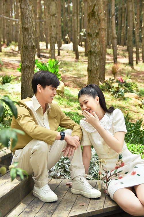 Trong bộ ảnh, Hồ Quang Hiếu diện vest nam tính, lịch lãm. Trong khi đó, Hoàng Hạnh Nguyên khoe nhan sắc trong veo, hút hồn với váy thanh lịch, nhẹ nhàng. Cả hai được ê-kíp tư vấn về trang phục, kiểu tóc… để kết hợp hài hòa, tái hiện lại một cặp đôi vừa mới yêu, có chuyến du lịch thú vị tại thành phố ngàn hoa.