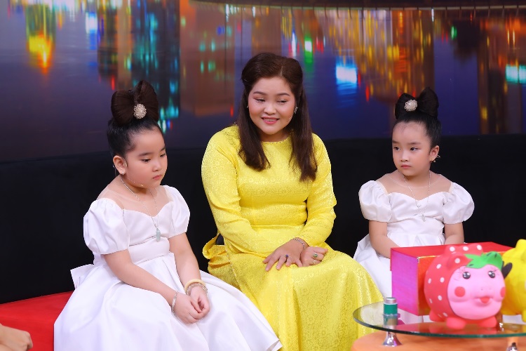 Lắng nghe câu chuyện, MC Ốc Thanh Vân và tiến sĩ Bùi Hồng Quân liên tục xuýt xoa trước vẻ đáng yêu của hai cô bé này. “Thật đáng quý khi hai con biết dành dụm tiền tiết kiệm để giúp đỡ người khác. Hai con còn nhỏ tuổi nhưng đã biết nghĩ đến người khác. Mong rằng mẹ sẽ có nhiều sức khỏe, bình an, hạnh phúc bên hai nàng công chúa đáng yêu. Những hành động của mẹ mỗi ngày như ăn chay trường, tham gia công tác xã hội giúp các con nhìn thấy được những giá trị tốt đẹp, là một tấm gương sáng cho các con”, Ốc Thanh Vân nhận xét.