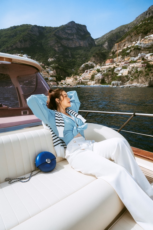 Trong bộ ảnh thực hiện tại Positano nước Ý, Lý Nhã Kỳ xuất hiện với vẻ quyến rũ với những set trang phục khéo léo khoe vòng một gợi cảm.