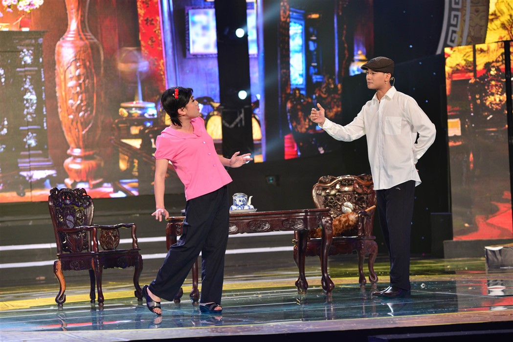 Với lối diễn vô cùng duyên dáng và sáng sân khấu, Don Nguyễn - Đoàn Minh tiếp tục chinh phục khán giả với những màn diễn “cười té ghế” trong trích đoạn “Đời cô Lựu”..