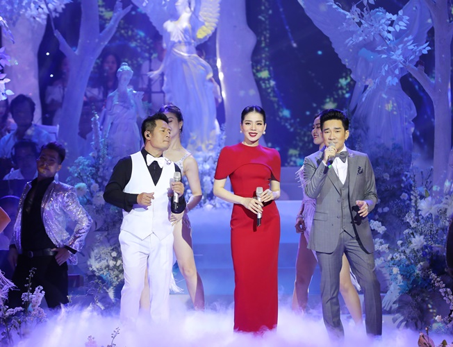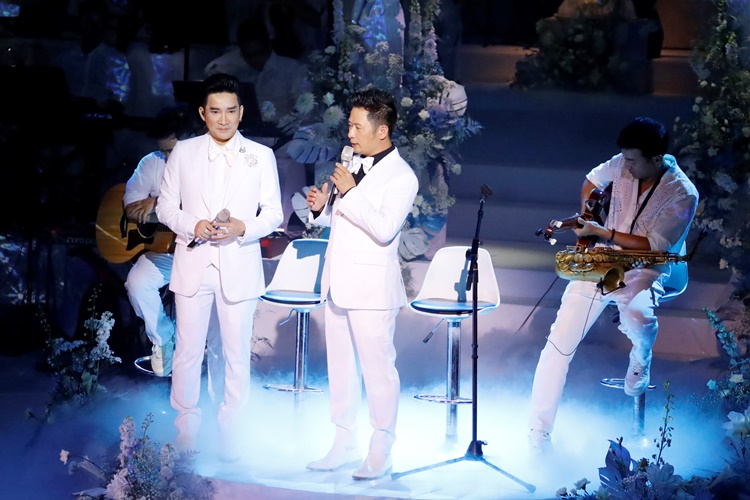 Quang Hà, Lệ Quyên song ca hai ca khúc “Vì sao em ơi”, “Vì sao không thể”. Trên sân khấu lãng mạn, đôi bạn thân hòa giọng hài hòa, xử lý tinh tế từng câu chữ khiến khán giả say sưa, xuýt xoa.