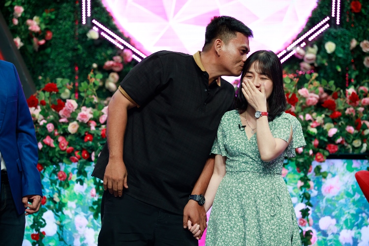 Hai năm chưa được nắm tay ai, Kim Trí đầy bối rối khi được nắm tay bạn gái. Trước sự “thách thức” của 2 MC, nam tài xế hùng hồn tuyên bố đã có thể trở thành “người đàn ông bình thường”, dù run nhưng anh vẫn mạnh dạn hôn lên tóc đối phương khiến cả trường quay thích thú đứng ngồi không yên.