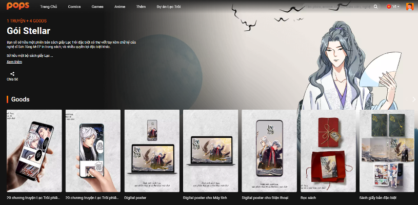 Trước đó, ngày 29/12 vừa qua, POPS và M-TP Entertainment đã chính thức ra mắt truyện tranh Lạc trôi, viết tiếp câu chuyện của vị Vương tử trong MV cùng tên cực kì nổi tiếng của Nghệ sĩ Sơn Tùng M-TP. Để thưởng thức bộ truyện, fan có thể lựa chọn một trong ba gói đọc (Star, Stellar, Sun) hoặc gói sản phẩm đặc biệt (Sky) tương ứng với nhiều mức giá khác nhau, thấp nhất từ 144.000 đồng đến 20.000.000 đồng. Các vật phẩm trong các gói bán này đã nhận được nhiều sự chú ý của công chúng.