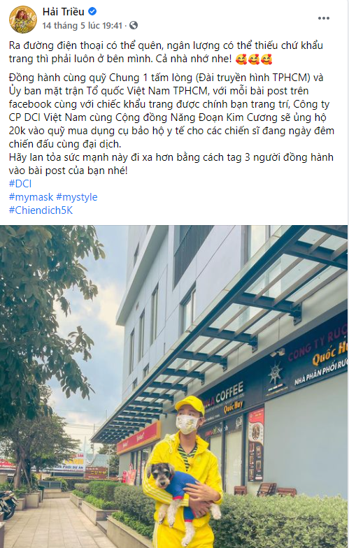 Với chủ đề “MY MASK MY STYLE” - chương trình kêu gọi mọi người tự tay trang trí chiếc “khẩu trang” của mình và đăng tải lên mạng xã hội. Với mỗi chiếc khẩu trang được đăng tải, Công ty Cổ Phần DCI Việt Nam cùng Cộng đồng Năng Đoạn Kim Cương sẽ đóng góp 20,000 VNĐ vào quỹ Chung Một Tấm Lòng (Đài truyền hình TPHCM) và Ủy ban mặt trận Tổ quốc Việt Nam TPHCM. Số tiền này sẽ được sử dụng để mua dụng cụ bảo hộ y tế cho các chiến sĩ, y bác sĩ ở tuyến đầu đang ngày đêm chiến đấu cùng đại dịch.
