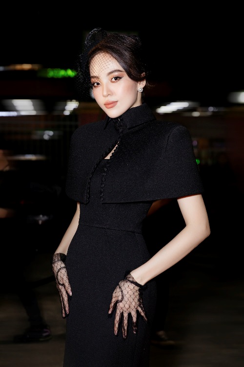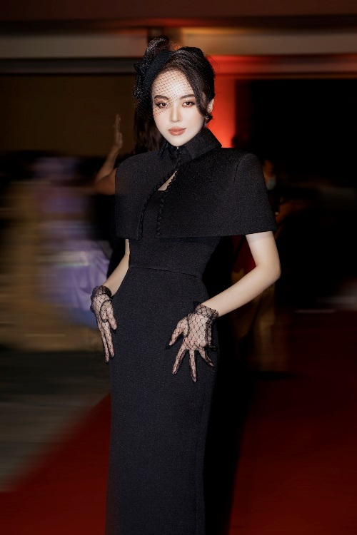 My Lê tạo dáng với thần thái bí ẩn, kiêu kỳ trên thảm đỏ sự kiện.