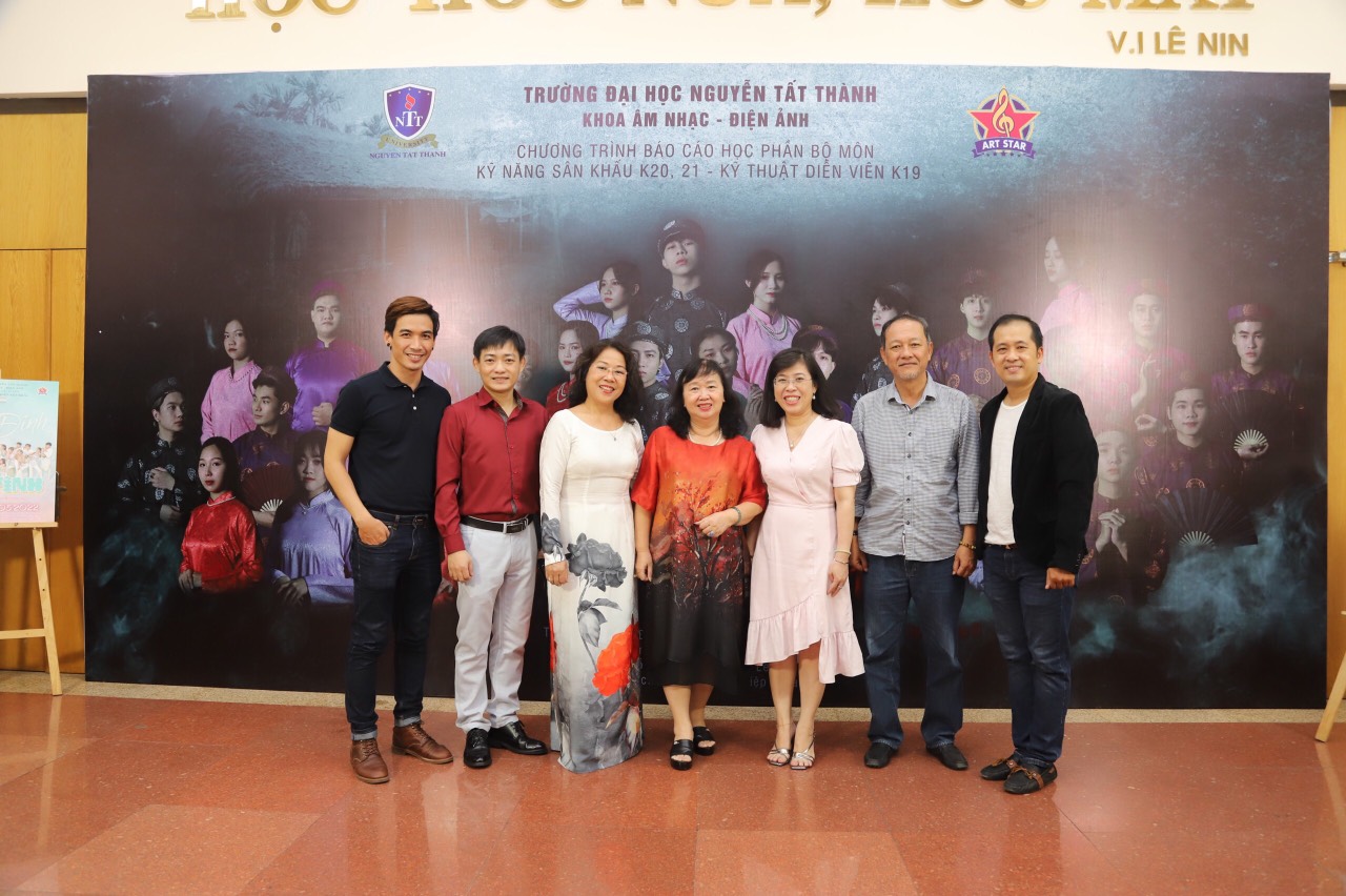 ( Từ trái sang) Trưởng bộ môn Kỹ thuật biểu diễn Sân Khấu: Đạo diễn - Biên đạo múa Nguyễn Lương Hoà; Phó trưởng khoa : Ths. Phạm Chí Công; Trưởng Khoa Âm Nhạc - Điện Ảnh Ths.NSƯT Nguyễn Thị Ánh Tuyết; Thạc sĩ Nguyễn Mai Lan - Chủ tịch hội đồng trường Đại học Nguyễn Tất Thành; Tiến sĩ Trần Ái Cầm - Hiệu Trường Đại học Nguyễn Tất Thành; Phó trưởng khoa : NSƯT Đào Anh Dũng; Giảng viên bộ môn : Đạo diễn- Biên đạo Nguyễn Lê Thanh Hải