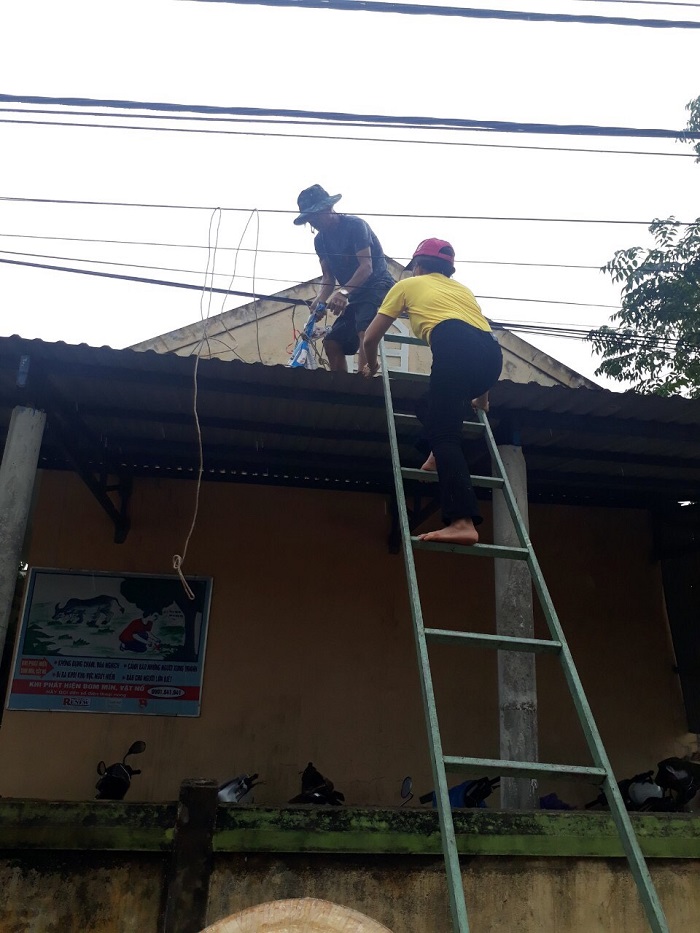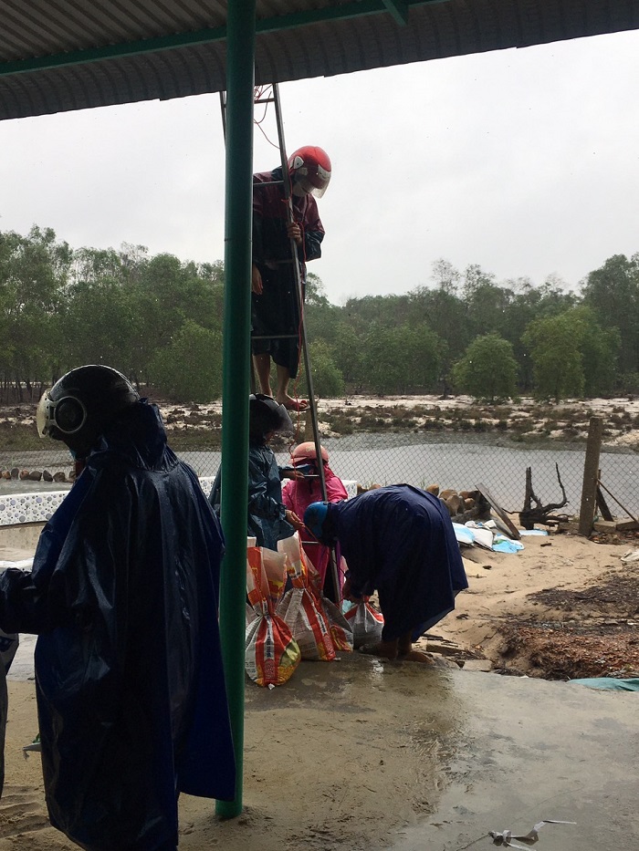 Hình ảnh các cô giáo,cán bộ công nhân viên của Trường mầm non Triệu An chuẩn bị chống bão, lũ