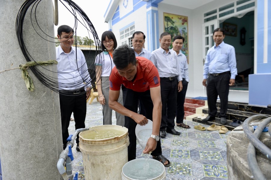 Anh Lê Thanh Phong xã Phú Tân vui mừng sử dụng nước sạch