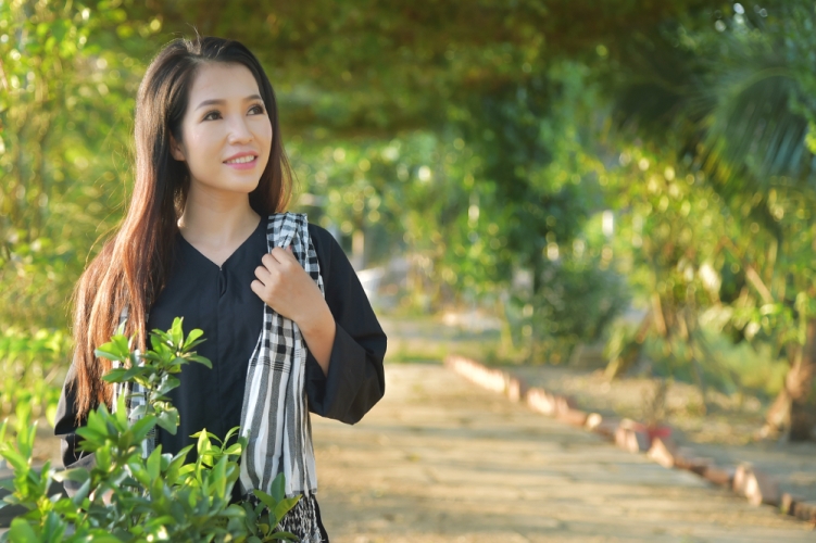 Nhân chuyến trở về Nha Trang làm khách mời danh dự của cuộc thi võ thuật Karatedo tại Huyện Cam Lâm, ca sĩ Thái Ngọc Thanh có dịp về đất vườn rộng 10 hecta của mình thực hiện bộ ảnh khá đẹp mắt khi hoá thân thành cô thôn nữ.