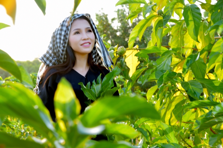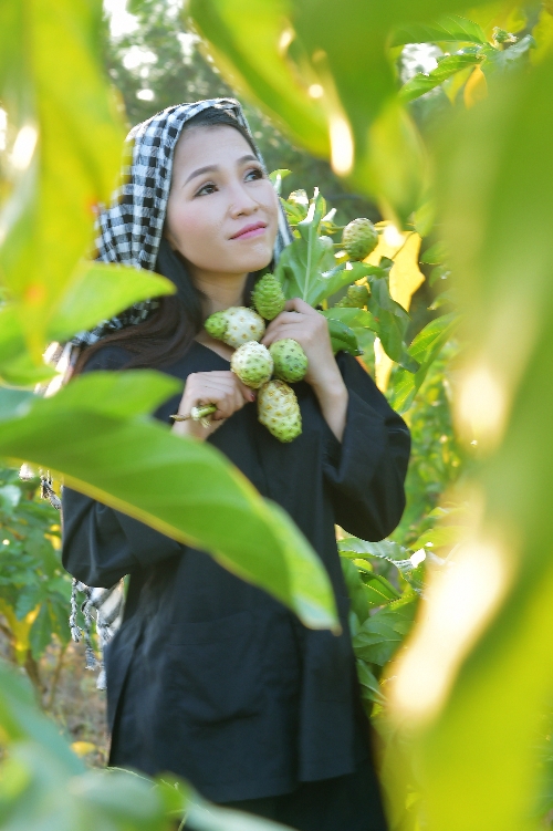 Ca sĩ Thái Ngọc Thanh bên vườn nhàu