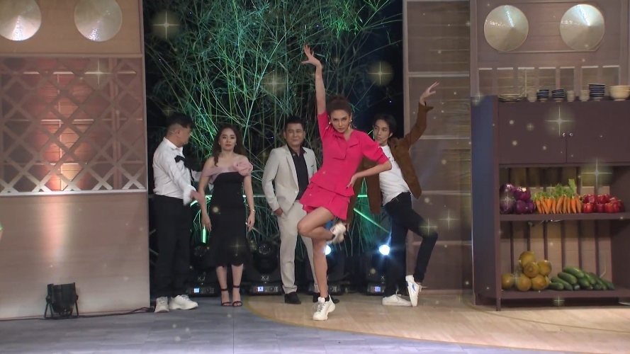 Nhạc nổi lên cũng là lúc Võ Hoàng Yến sải bước chuyên nghiệp trên sân khấu. Không hổ danh siêu mẫu từng cử chỉ, bước chân của cô đều thu hút người đối diện. Sau khi được “cô giáo” làm mẫu, Trịnh Tú Trung – Dương Thanh Vàng cũng hăm hở trình diễn. Tuy nhiên cách pose dáng “khó hiểu” của 2 nam diễn viên khiến người xem chỉ biết im lặng, lắc đầu. Không chịu thua kém khách mời, vợ chồng Thực Thần cũng “ham hố” thể hiện tài năng. Nhưng thay vì pose dáng 1 cách nhẹ nhàng, chuyên nghiệp họ lại nhảy “sung” đến mức quên cả khách mời.